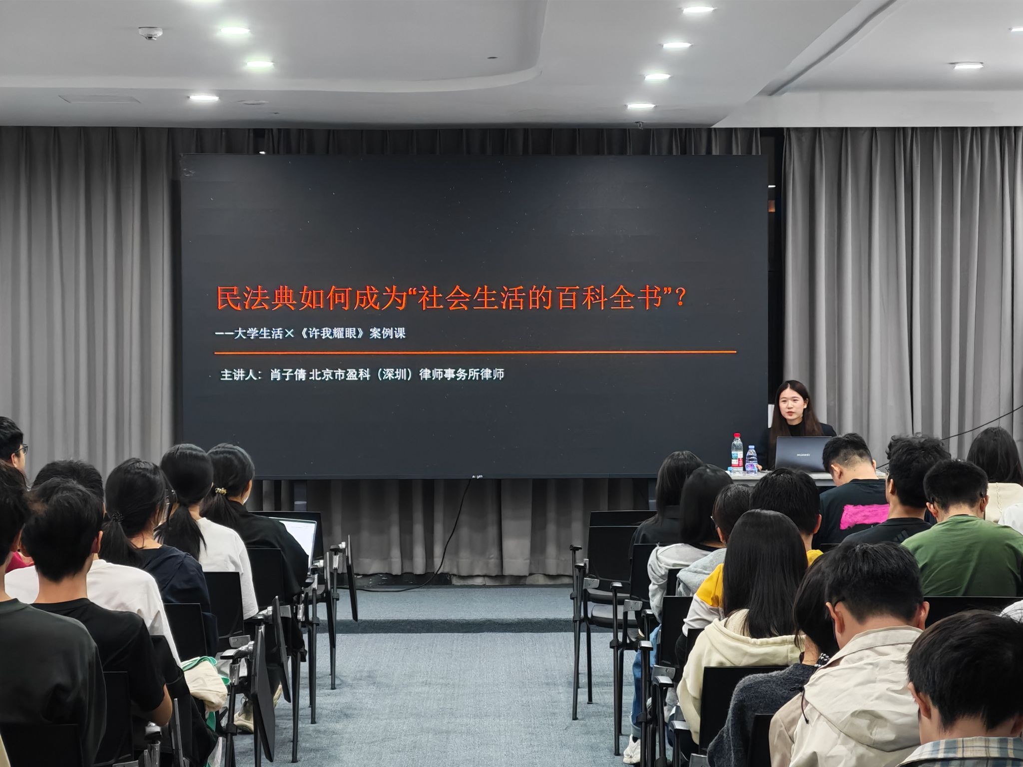 毕业生肖子倩律师主讲,为100余名学子带来“民法典如何成为‘社会生活的百科全书’——大学生活×《许我耀眼》案例课”,以鲜活场景、通俗表达,为同学送上专属法律“护航指南”。