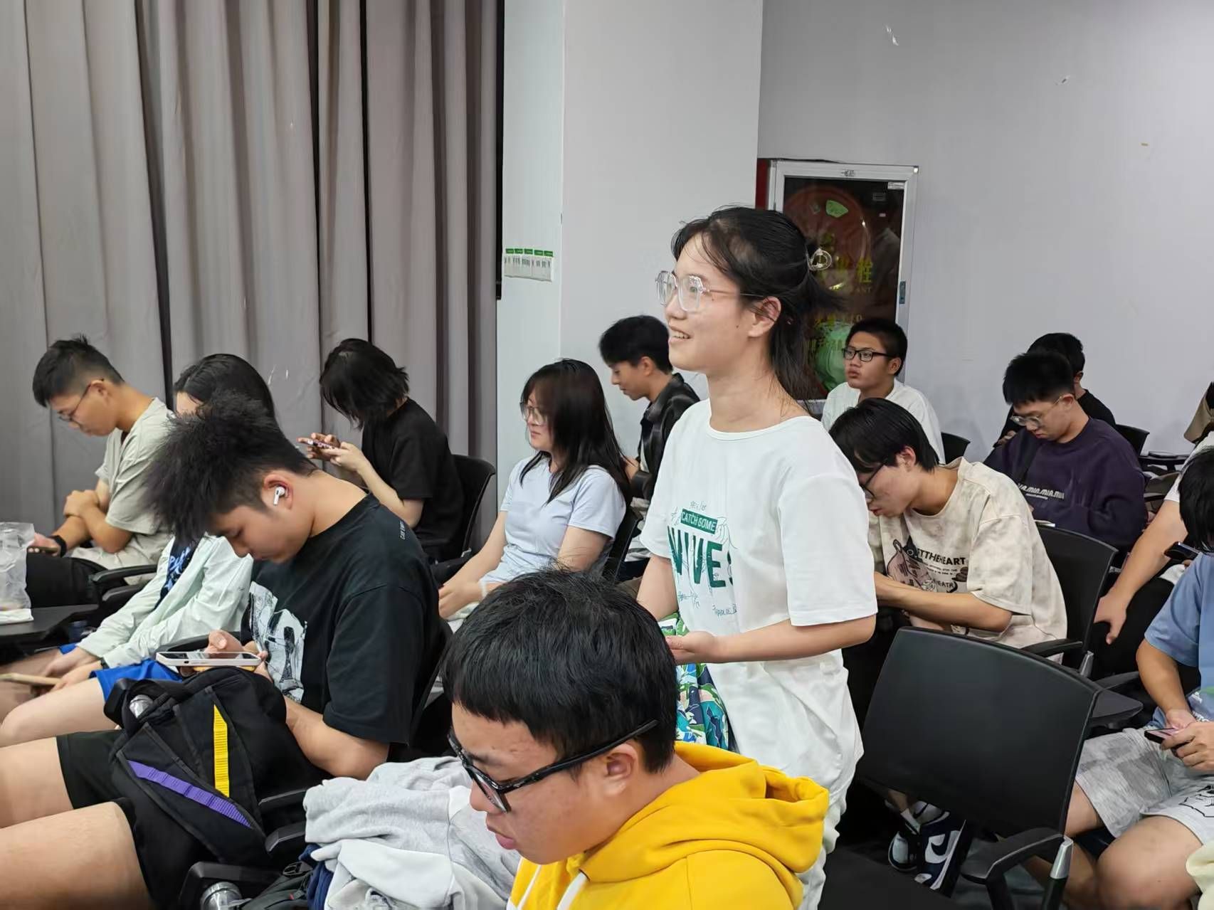讲座后半段,近期热播剧《许我耀眼》的剧情片段更是将现场气氛推向高潮。“女主伪造身世欺骗男主父母,这违法吗?”“男主隐瞒私生子与他人结婚,这段婚姻有效吗?”带着这些大家热议的剧情疑问,主讲人肖子倩律师顺势科普了诈骗、婚姻无效、离婚损害赔偿等法律知识。剧情与法律的深度联动,让同学们在“追剧”式学习中厘清了婚姻家庭中的法律红线,现场讨论声此起彼伏。
